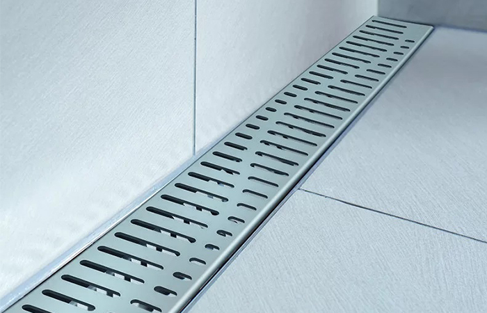 Flomax shower drain solutions combine efficient drainage with clean architectural design.